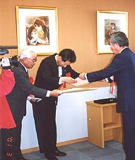 ![]() 船穂町への贈呈式 |