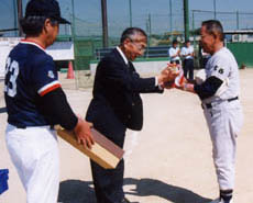 | 4月から練習に入りましたが参加者が数人と大変少なくこれから先のことが心配でしたが試合が近くなるに従って部員の参加も多くなり全員でがんばろうと盛り上がった状態で大会に望んだ結果、2試合ともワンサイドゲームで楽勝となりました。とにかく我々の部員はガンガンとヒットはでる、ホームランはでる、守りは完璧と申し分ありませんでした。メンバーの皆さん試合だけですと怪我をしますので練習で体を鍛えましょう。ありがとうございました。 |