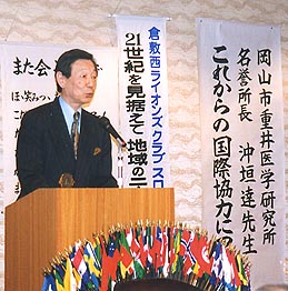 | ◎これからの国際協力についてと題して岡山市重井医学究所名誉所長沖垣達先生の講話がありました。このあと国際医療用ベット寄贈事業へと進展になります。(インドネシア) | ||