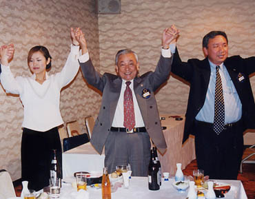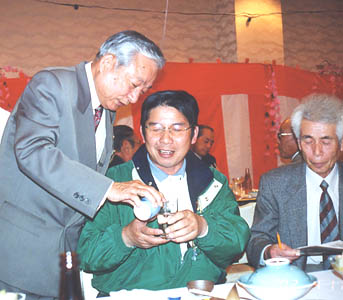 計画委員長のすばらしい設営で会長も楽しそうに酌をしています