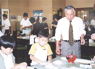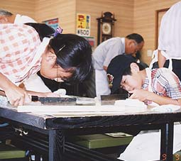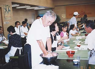 バス2台での楽しい家族納涼例会(手打ちうどんの勉強)