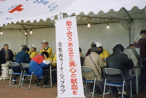 | 献血バス3台で今年は玉島ショッピンセンタートップスにおいて献血キャンペーンを実施しました。毎年血液の不足する7月と2月の年2回実施しています。 ハガキやポスターあるいはマスコミなどを通じ、高校・大学・各種団体・市民のみなさんに呼びかけました。降りしきる雨のなか、山陽高校野球部30名もバスで献血に来てくださり・感謝・感謝。 成績は過去最高を記録しました。 | |||||||||||||