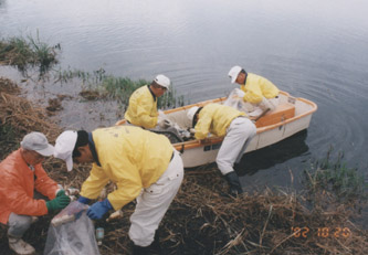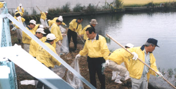 | 市民総出で清掃活動! 10月20日倉敷市玉島地区の中心市街地を流れる溜川(豪雨時の遊水池)で清掃大作戦(玉島商工会議所環境問題委員会主催)が行われました。当日は大変天気もよく各団体(倉敷西ライオンズクラブ、玉島ライオンズクラブ、玉島ロータリークラブ、玉島まちづくり市民フォーラム、環境問題に取り組んでいる・玉信・商連など企業、諸団体、市民)からたくさんの方が参加して大変盛大でした。我が倉敷西ライオンズクラブも大勢のメンバーが集合して、担当区分の溜川北岸を各種(空き缶・空き瓶・粗大ごみ)に分別して拾い集めた、周辺は大変きれいになりました。 黄色のユニュホームで清掃奉仕に参加したメンバーのみなさんほんとうにご協力いただき有難うございました。 |