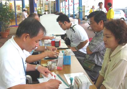 | 受付後の血液検査 | 緊張顔で採血 |