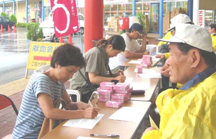 | 献血バス3台で今年も玉島ショッピンセンタートップスにおいて献血キャンペーンを実施しました。毎年血液の不足する2月と7月の年2回実施しています。 ハガキやポスターあるいはマスコミなどを通じ、高校・大学・各種団体・市民のみなさんに呼びかけました。当日は一日中土砂降りと言う悪条件にもかかわらず献血にご協力いただきまして、厚くお礼申し上げます。 献血にご協力いただいた際に血液検査の希望がありました方には、後日血液検査結果をお送りいたします。 岡山県赤十字血液センター所長からのお礼状も来ております。 尚過去実績は下表の通りであります。 | |||||||||||||||