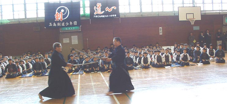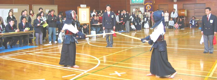| 声援を受けての熱戦中(少年少女剣士たちはメェーン、コテェー) |