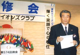 | 研修会に先立ち渡辺会長挨拶 | 336B地区インパクトチームリーダー宗像講師 |