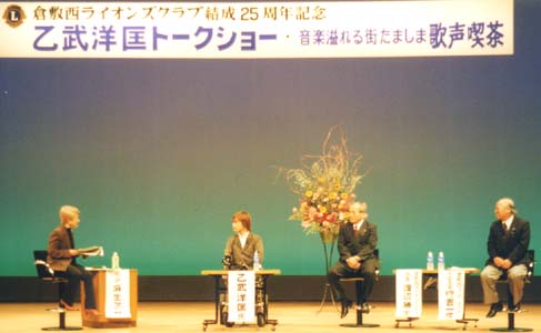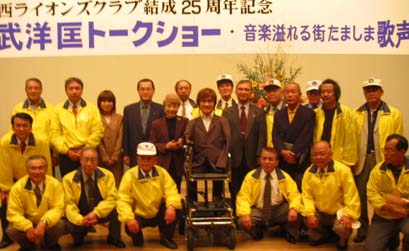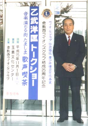 | 結成25周年記念委員会では、人気と実力を持ち、予算と要望講演テーマ、日程にマッチした最適な講師を選出したいと思い、代表的な講師を選んだ結果、乙武洋匡氏の経験(目的、体験、人生観、等々)がライオンズクラブのアクティビティの青少年健全育成に最適であると考え、全員賛成で進める運びとなりました。 実際に実行致しますと、整理券は不足(1500枚製作)、事務所には電話が殺到、対応に大変でした。当日、会場の玉島文化センターには朝早くから並ぶ来場者の為(開場12時予定)30分開場を早める始末、開演13時には収容1000人の場内に溢れんばかりの人々、幸い我々は多数の来場者を見込んでいましたので、ロビーにはモニターテレビを設置して対応しました。 みんなで歌おう音楽溢れる街たましま歌声喫茶、乙武洋匡トークショーと全2時間、結果約1300人の来場者、大成功に終わったと思います。会長、大会委員長及び全メンバーの絶大なご協力、大変ありがとうございました。 副実行委員長 佐々木 堯