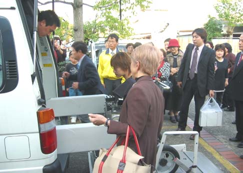 | 文化センター入り口看板乙武氏と渡辺会長 | 乙武洋匡氏文化センター前に到着 | |