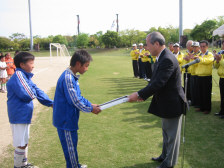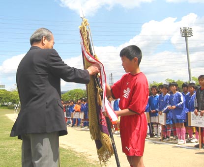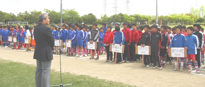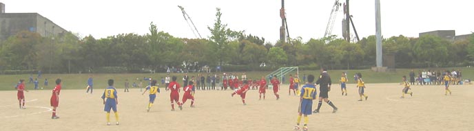 | 4月24日と25日の2日間にわたり、小学校6年生を中心とした小学生のクラブチーム24チーム435人が参加して、玉島の森多目的広場と中国電力玉島発電所グランドで、少年サッカー大会が開かれました。初日は3チームづつ8ブロックに分かれて予選を行い、2日目は予選の成績によって六つのグループに分かれて、トーナメント方式でそれぞれ優勝を争いました。 中には女の子もいて男の子を突き飛ばさんばかりの元気なプレーにはびっくりしました。数日前の「日本の女子サッカーアテネ五輪出場!」のニュースをつい思い出してしまいました。こんな子がいるかぎり、アテネの次もきっと大丈夫だろうと思いました。冬に逆戻りしたような寒い2日間でしたが、応援してくださった父兄の皆様や大会の準備に奔走してくださった関係者の皆さんありがとうございました。 |