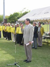 | 開会式(挨拶する大会会長の25代渡辺会長) |