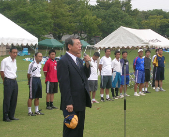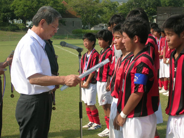 8月4〜5日に渡り真夏の炎天下の下、8チームによる熱戦が繰り広げられました。今回は接戦の試合が多く8試合中3試合がPK戦にもつれ込む展開になりましたが、決勝戦も手に汗握る熱戦となり、PK戦の末船穂中学校が5対4で金光中学校を突き放して悲願の初優勝を遂げるという劇的な幕切れとなりました。「初優勝したら焼肉パーティーをおごってやる」と約束していた船穂在住のクラブメンバーも、予想外の展開にちょっと青くなりながらもうれしい悲鳴を上げておりました。ハッスルプレーで楽しませてくれた生徒諸君、炎天下の中審判や運営で奔走された先生方、お忙しい中応援に駆けつけていただいた多数の父兄の皆様やクラブメンバーの方々どうも有り難うございました。夜の反省会の折にも先生方から、「この大会は生徒も楽しみにしているので是非末永く続けて欲しい」とのお言葉がありましたので、来年度もより良い大会にしていきたいと思います。 2007.8.6 教育市民公衆安全委員長 山本達也