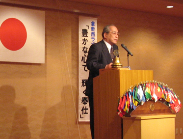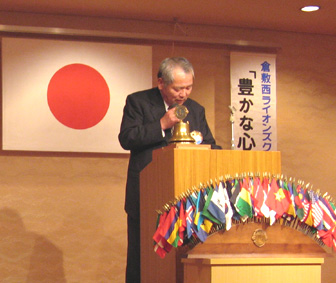| 大江宣二ZCPによるメンバースピーチ 倉敷西ライオンズクラブの歴代会長スローガンの説明 (現在うまく運営出来ているのも、クラブスローガンがよい) ガバナー諮問委員会の内容、他クラブとの比較。 (国際会長・地区ガバナーの方針・そしてそのクラブの 地域性を加味した運営が必要である・・・・・・等々) 西クラブの良さ等について熱心にスピーチされました |