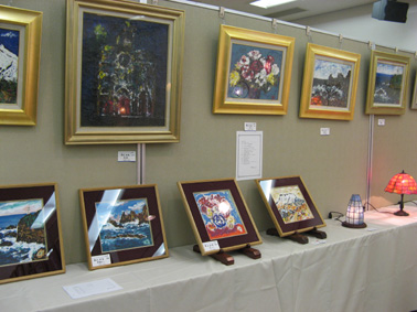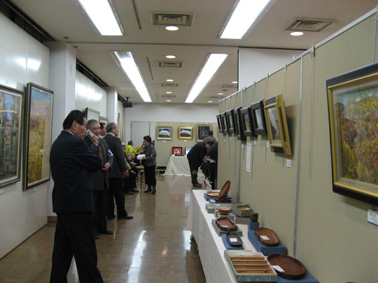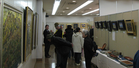 19年12月15日・10日の16日間横内宏充遺作店・銘木工芸逸品店及び賛助出品4人展:岡本肇(油彩画)・渡辺利昌(油彩画)・森 一宗(備前焼)・豊本吉隆(ステンドグラス)の展示即売会を玉島文化センターで開催しました、一般市民とメンバー各位のご協力によりたくさんお買い上げいただき感謝申し上げます。