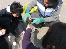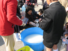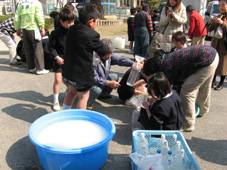 | EM菌で実験する子供達 | ||