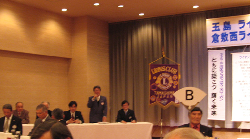 | 挨拶する玉島LC会長及び例会 | 倉敷西LC例会 |