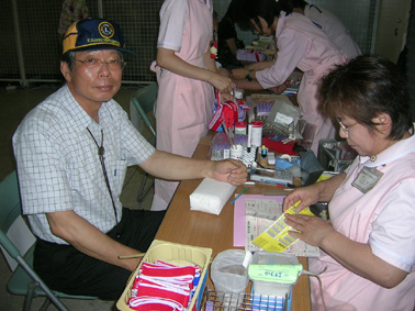 | 献血前の検査 | 大勢の受付のようす | |