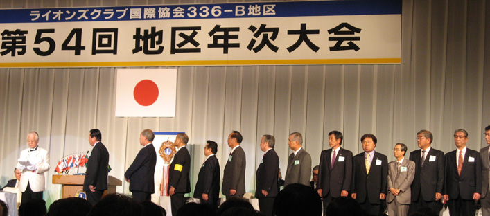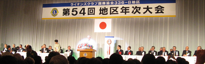 第54回地区年次大会が4月13日ホテルオークラ岡山で開かれました。アクティビティースローガン「ともに築こう輝く未来」、ガバナースローガン「変化を求めてウイサーブ」のもと2000名に近い岡山、鳥取両県のメンバー並びに、石井岡山県知事、高谷岡山市長、名越前国際理事、をお迎えして盛大に開催された。。
