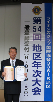 | 336B地区ではホストクラブを除き最高の人数(58名)会場で中々集まれません。 | 大賞と渡部会長 |