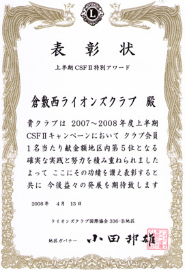 | ガバナーズ大賞受賞 | CSFU国際会長表彰 |