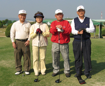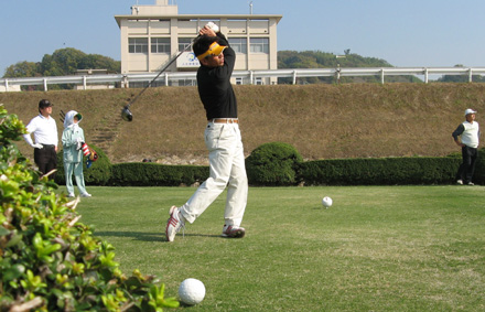 | スタート前の記念写真 | 井上部会長のナイスショット |
