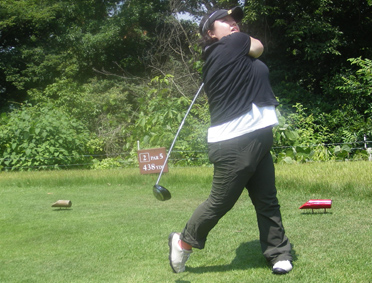 新会員の笠原さん(左)、杭谷さん(右)、の二人は男性を圧倒するパワフルなスイングです。