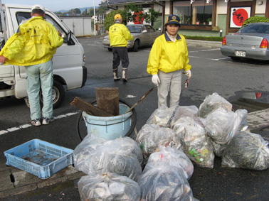 | 大勢で清掃したくさんのゴミを分別収集しました(杭谷委員長) |