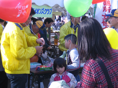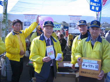 | 森本献賢・献眼・献血委員長他の面々 | キャンペーン推進中のメンバーおよび募金して下さるお客さん |