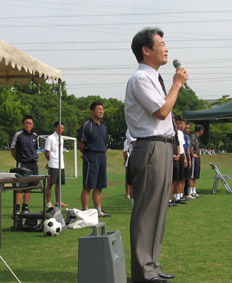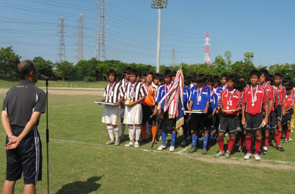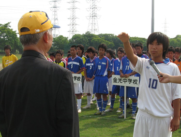 | 準優勝の金光学園中学校 | 閉会の挨拶をする田野第3副会長と選手達 |
