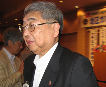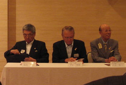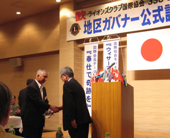 | ガバナーからバナーを受け取る小林会長 | 公式訪問後席を立つガバナー |