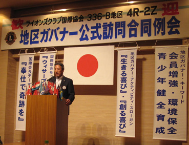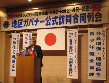 | 2008年8月7日セントイン倉敷において336-B地区 4R-2Z ガバナー公式訪問合同例会がありました。ガバナーから国際大会の様子、今年度のガバナー方針について熱心に話されました。ホストクラブの玉島LC千田会長挨拶で始まり、西LC小林会長のロアで終了しました。 |