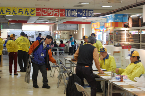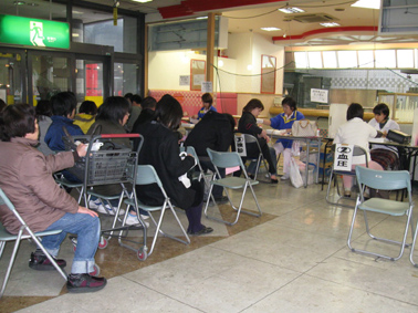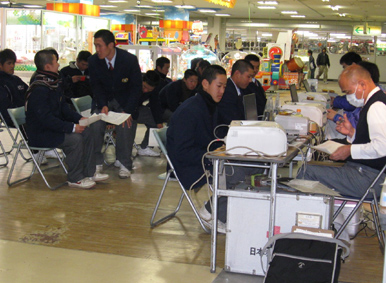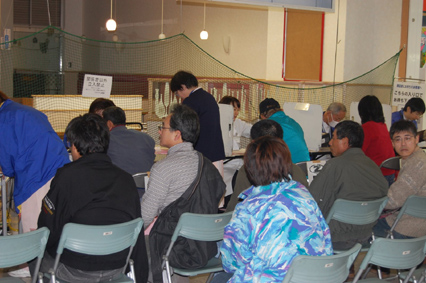 | 受付で説明するメンバー | 剣道連盟も協力 | 高校生も大勢協力 |