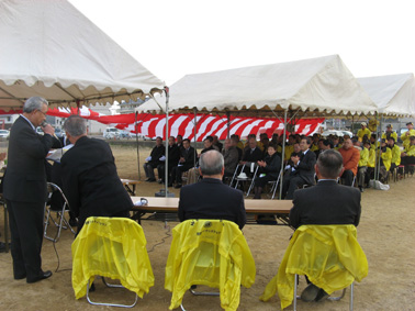 | 挨拶する伊東倉敷市長 | 挨拶する玉島商工会議所会頭 |