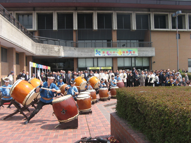| 盲導犬と森岡ガバナー | アトラクションで津山鶴山太鼓 |