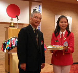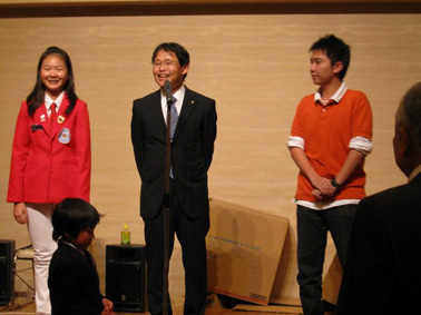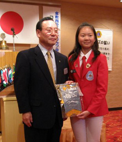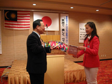 | 挨拶する小林会長 | 小林会長挨拶 | YE生 Miss CHENG YI TINGバナー交換 |