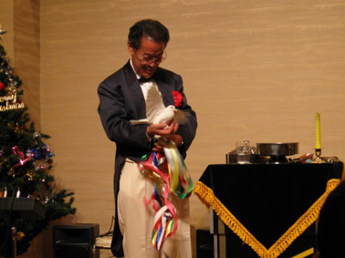 | セントイン倉敷において、マレーシアのYE生(Miss CHENG YI TING=畑直彦ホストファミリー)を迎え、メンバーの奥様・ご家族・中学・小学・幼児、総勢の参加で、「マジック部」も大活躍でクリスマスの一夜を楽しみました。 そして子供へのプレゼント、、奥様には花のプレゼントと気を配ったクリスマス会が出来ました。以下写真にて楽しい様子をご覧下さい。 |