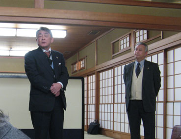 | 平成20年2月7日子元において次期役員指名委員会(内規により歴代会長全員が指名委員となる)を開き30代小林会長の今年度30周年記念事業についての説明があった(30周年の残す事業は溜川湖水公園の桜の植樹・記念式典)。そして次期役員の指名委員長の渡部前会長より経過説明があり武政第一副会長の会長指名がありました。武政会長の挨拶の後次期役員候補の説明があり全一致で承認されました。そして恒例の楽しい懇親会で一夜を過ごしました。 |