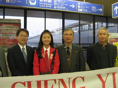 | 左からホストファミリー 畑 直彦さん、YE生 Miss CHENG YI TING、 小林会長、国富幹事、(新倉敷駅にてで向かえ) | ||||||||||||||||||||||||||||||||||||||||||||||