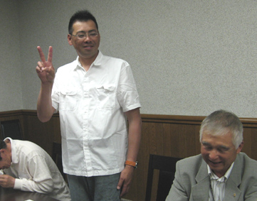 | 会長挨拶 | 昼の休憩中 | 初日優勝した田邉光重さん |