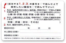 脳死後、臓器提供をするためには、脳死の判定に従う意思と臓器提供する意思を示した書面が必要です。さらに、家族の承諾も必要です。心停止後に臓器提供するためには、必ずしも臓器提供意思表示カードは必要ではありませんが、このカードを利用して自分の意思表示をしておきましょう。
