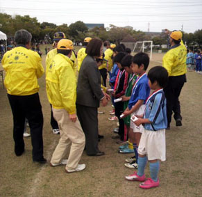 ・中国電力玉島発電所グランド 今回で21回目のこの大会は日本サッカー協会推奨の8人制サッカーを初めて採用しました。 各チームの監督、コーチもこの8人制は試行錯誤しながらシステムの構築中で苦労が多いと聞きました。 しかしながら、8人制 になり1人あたりの担当エリアが広くなりスピーディで迫力のある 試合が増したように思えました。 小学生とは思えないようなプロ顔負けの素晴らしいゴール。 涙を流したPK戦、そして試合後の相手をたたえ合う握手、と今年もすばらしい多くの感動を与えてくれました。と同時に選手自身も多くを学び成長してくれたと喜んでおります。 |