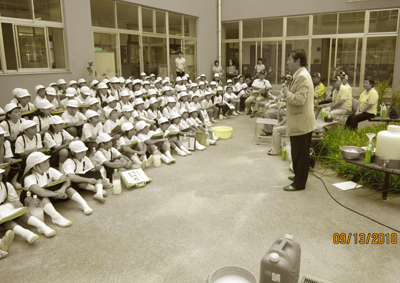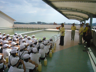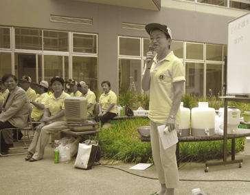 | 2010年9月13日長尾小学校において児童及び先生を対象にプール浄化EM菌菌投入についての勉強会を行いました。猛暑の中、児童達そして先生、倉敷西LCメンバーの大勢の参加でEM菌の効用・増殖の方法等についての勉強をしました。 そして9月22日には皆で育てたEM菌を全員でプールに投入しました。今後どのように成長?変化?していくか、楽しみです。 環境保全・社会福祉委員長 杭谷佐登子 |