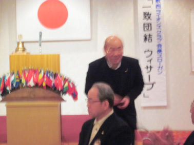 | 挨拶する 田野会長 | 「チャーター・モナーク・シェブロン賞」 40年 高田勲さん |