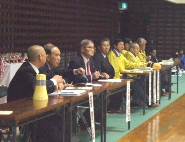 | 開会の挨拶をする田野会長 | 開会式役員一同 | 優勝旗返還 |