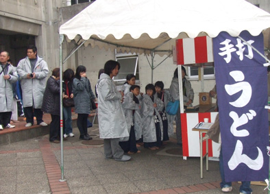 | うどんコーナーの様子 | 東日本大震災募金活動の様子 |