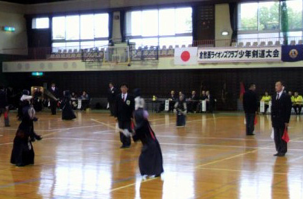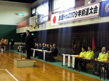 | 3月20日(日曜日)玉島の森 体育館にて第32回倉敷西ライオンズクラブ剣道大会が開催されました。東日本大震災直後のため、多くの催し物が中止になるなか一時は開催自体も危ぶまれましたがこの大会を楽しみに稽古を積んできた子供たちのためにと関係各団体及び保護者の方々のご協力により無事開催することができました。また、この剣道大会に併設してチャリティーバザー、うどんコーナー等、募金活動も行いました。本大会の参加者は、選手186名、役員53名、審判員30名の合計269名で、メンバーの参加者は48名でした。 青少年健全委員長 丸本 晃一 |