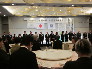| 23年4月3日ヘルスピア倉敷において水島中央ライオンズクラブチャーターナイト(認証状伝達式)が、ライオンズクラブ、一井ガバナー始め地区役員、4R-1Z、2Zの近隣のクラブ会員並びに来賓の倉敷市長、倉敷芸科大副学長を迎えて、執り行われました。記念事業としてはLCIF(ライオンズクラブ国際財団)に金一封・倉敷芸科大学に金一封・東日本大震災の被災家族に家一軒と畑を無償貸与。と言う立派な事業の発表がありました。 |