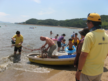 | 西瓜割りをする子ども達 | 底引き網 | |