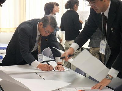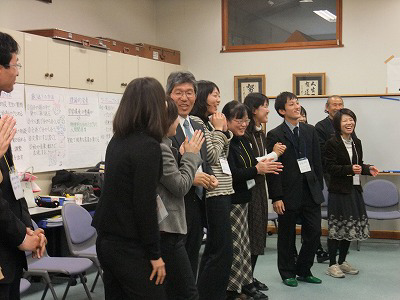 | 1月8〜9日の2日間、玉島北中にて校内型ワークショップを開催。北中の先生15人を含め先生27人、倉敷西LCメンバー4人(渡部、畑、杭谷、立花)を含めLCメンバー5人、合計32人の参加(準備には委員会メンバーに会長、幹事も参加)。 思えば今回の開催にこぎつけるまでに3年の歳月を要しました。 終了時の先生方の感想、特に「ぼくが子供の頃にこの授業を受けていたらぼくの人生は変わっていたと思う」という言葉を聞いた時、頑張って取り組んできて良かったと涙がでるほどうれしかったです。 しかし、これがゴールではありません、これからがスタートです(下記はワークショップの写真です)。 |