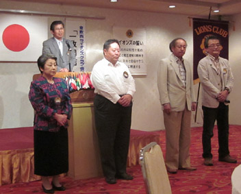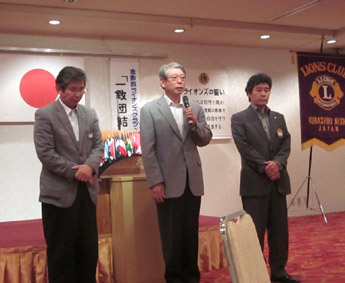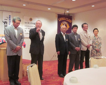 | 新旧役員バナーバッチの交換 | 地区役員就任挨拶(渡部副地区ガバナー他 | 33代新役員挨拶 |